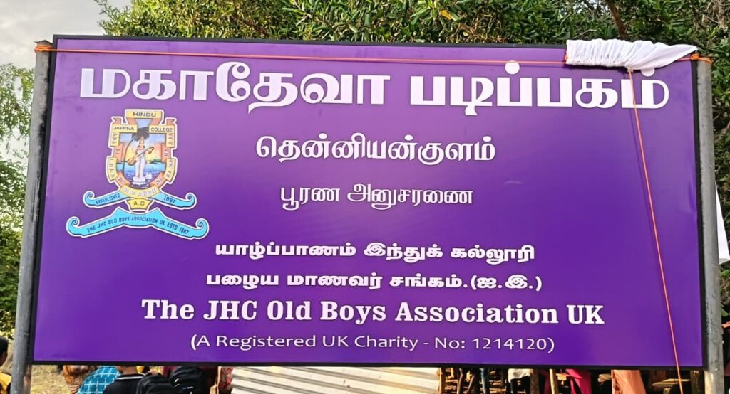 We are proud to announce the inauguration of Mahatheva Padippaham, an educational initiative by The JHC Old Boys Association UK, officially opened on 9th October 2025 in Thenniyankulam, Thunukkai, in the Mullaitivu District of Sri Lanka.